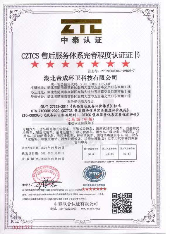 湖北帝成環(huán)衛(wèi)科技有限公司售后部組織相關(guān)部門進(jìn)行評(píng)審鎖定故障及安全事故原因,判定責(zé)任方,第一時(shí)間解決客戶損失。如問(wèn)題原因由供應(yīng)商質(zhì)量問(wèn)題導(dǎo)致,追訴供應(yīng)商責(zé)任,并責(zé)成供應(yīng)商對(duì)所有涉及車輛進(jìn)行更換維修,保證產(chǎn)品質(zhì)量,承擔(dān)客戶損失。并對(duì)此類故障提供分析報(bào)告,橫縱向展開(kāi)排查同批次或同類型產(chǎn)品質(zhì)量,確保出廠零部件滿足車輛適用要求。