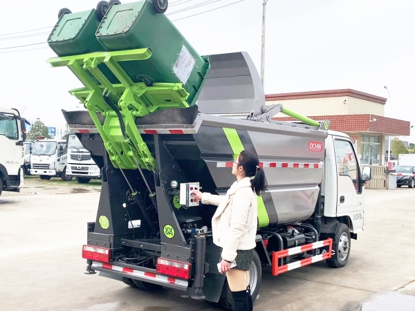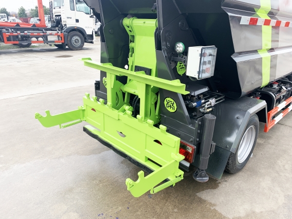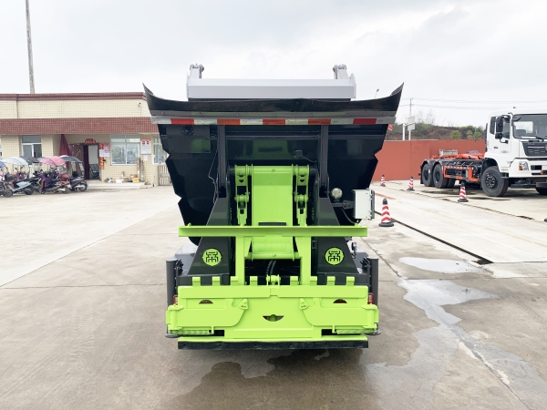 自裝卸式垃圾車在底盤的基礎上,加裝垃圾箱體、連接附件、防護欄及液壓系統(tǒng)等裝置。具有操作安全、使用性能穩(wěn)定、返修率低、售后服務及時周到等特點。本產(chǎn)品主要用于收集與轉運城市住宅小區(qū)、鄉(xiāng)鎮(zhèn)街道等產(chǎn)生的生活垃圾。整車小巧靈活,行動方便,適應人流密集的商業(yè)區(qū)域和道路交通情況較差的城鄉(xiāng)地區(qū)。本車配有后掛桶進料機構,在翻桶處操作,可與120L/240L/660L標準塑料桶對接。整車具有自卸功能,卸料方便。結構結實耐腐 船型箱體結構實現(xiàn)100%無泄漏;刮板進料+壓縮 壓縮效率高;高位舉升自卸結構,卸料干凈 對接方便;多功能翻桶進料機構 進料快捷穩(wěn)定;液壓系統(tǒng)穩(wěn)定可靠;自動化程度高,電液聯(lián)合控制。