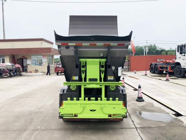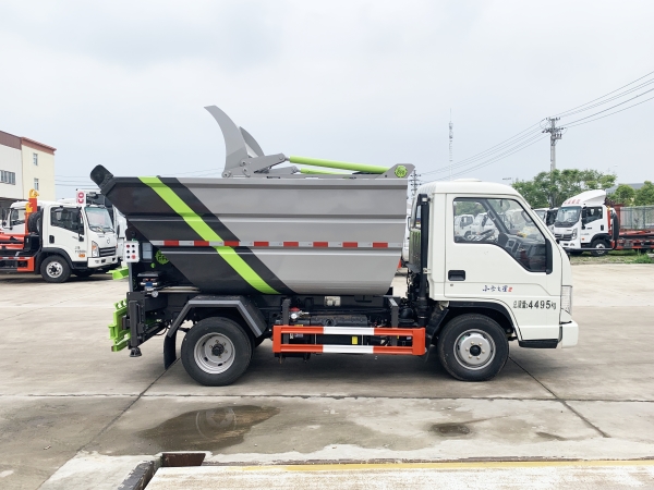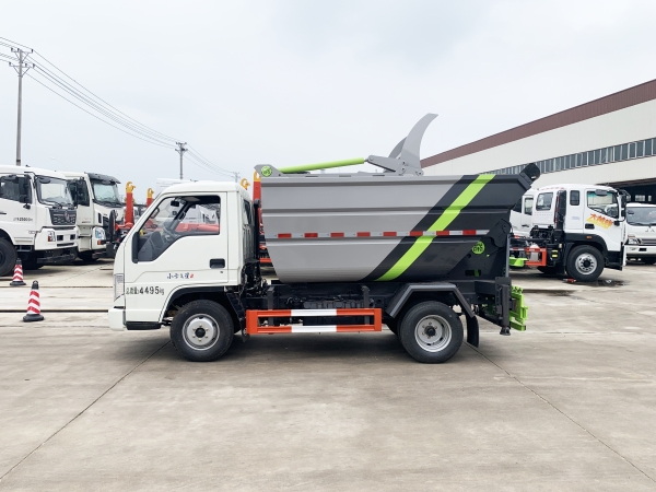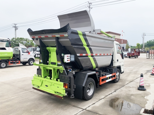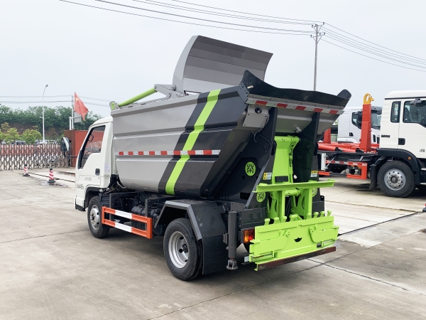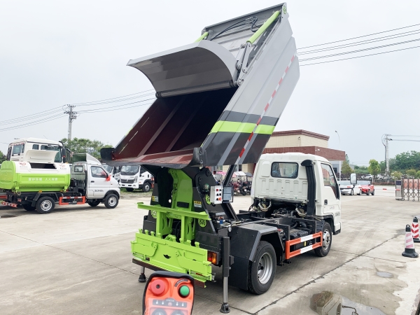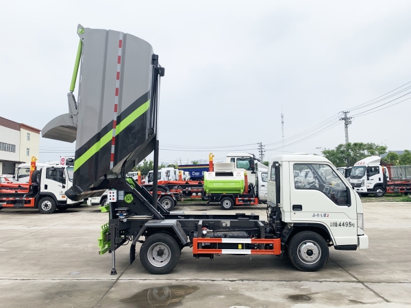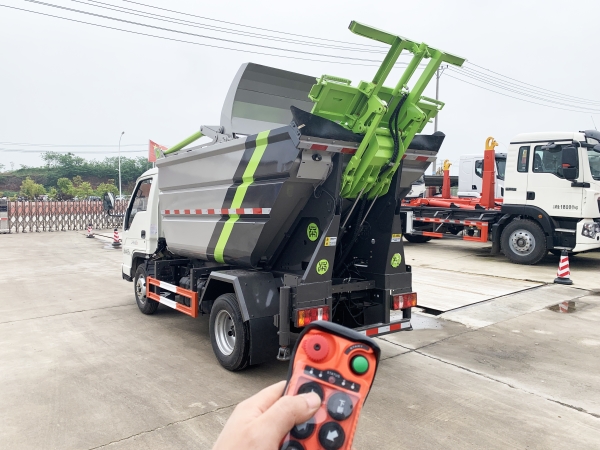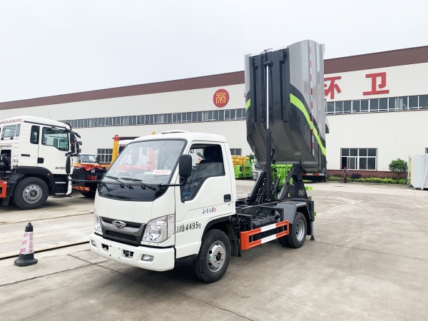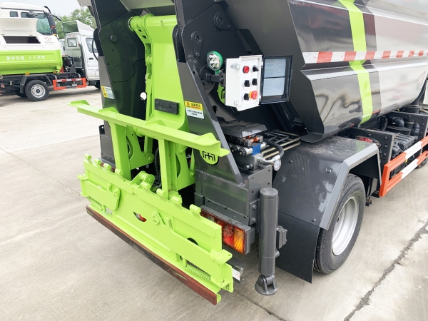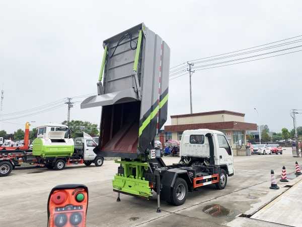 自裝卸式垃圾車在底盤的基礎(chǔ)上,加裝垃圾箱體、連接附件、防護欄及液壓系統(tǒng)等裝置。具有操作安全、使用性能穩(wěn)定、返修率低、售后服務(wù)及時周到等特點。本產(chǎn)品主要用于收集與轉(zhuǎn)運城市住宅小區(qū)、鄉(xiāng)鎮(zhèn)街道等產(chǎn)生的生活垃圾。整車小巧靈活,行動方便,適應(yīng)人流密集的商業(yè)區(qū)域和道路交通情況較差的城鄉(xiāng)地區(qū)。本車配有后掛桶進料機構(gòu),在翻桶處操作,可與120L/240L/660L標(biāo)準(zhǔn)塑料桶對接。整車具有自卸功能,卸料方便。結(jié)構(gòu)結(jié)實耐腐 船型箱體結(jié)構(gòu)實現(xiàn)100%無泄漏;刮板進料+壓縮 壓縮效率高;高位舉升自卸結(jié)構(gòu),卸料干凈 對接方便;多功能翻桶進料機構(gòu) 進料快捷穩(wěn)定;液壓系統(tǒng)穩(wěn)定可靠;自動化程度高,電液聯(lián)合控制。