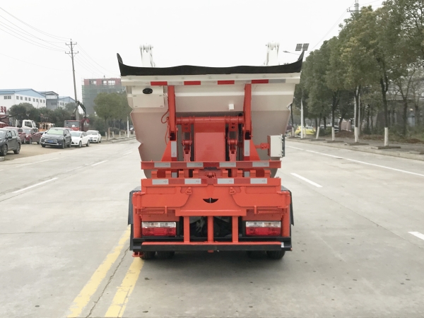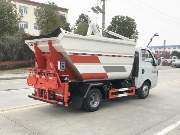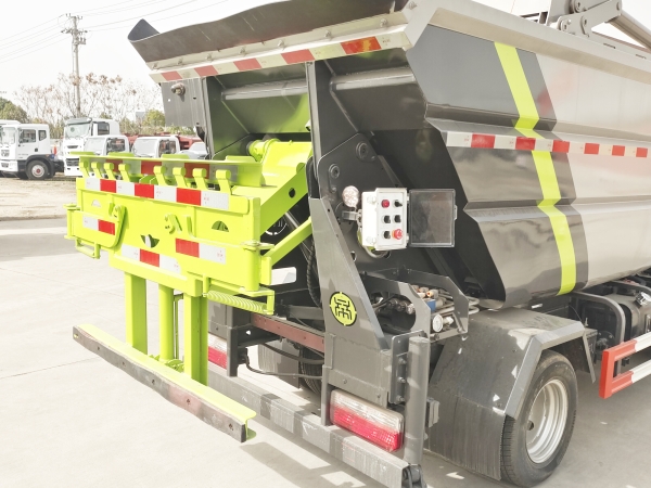 自裝卸式垃圾車在底盤的基礎(chǔ)上,加裝垃圾箱體、連接附件、防護(hù)欄及液壓系統(tǒng)等裝置。具有操作安全、使用性能穩(wěn)定、返修率低、售后服務(wù)及時(shí)周到等特點(diǎn)。本產(chǎn)品主要用于收集與轉(zhuǎn)運(yùn)城市住宅小區(qū)、鄉(xiāng)鎮(zhèn)街道等產(chǎn)生的生活垃圾。整車小巧靈活,行動(dòng)方便,適應(yīng)人流密集的商業(yè)區(qū)域和道路交通情況較差的城鄉(xiāng)地區(qū)。本車配有后掛桶進(jìn)料機(jī)構(gòu),在翻桶處操作,可與120L/240L/660L標(biāo)準(zhǔn)塑料桶對(duì)接。整車具有自卸功能,卸料方便。結(jié)構(gòu)結(jié)實(shí)耐腐 船型箱體結(jié)構(gòu)實(shí)現(xiàn)100%無(wú)泄漏;刮板進(jìn)料+壓縮 壓縮效率高;高位舉升自卸結(jié)構(gòu),卸料干凈 對(duì)接方便;多功能翻桶進(jìn)料機(jī)構(gòu) 進(jìn)料快捷穩(wěn)定;液壓系統(tǒng)穩(wěn)定可靠;自動(dòng)化程度高,電液聯(lián)合控制。