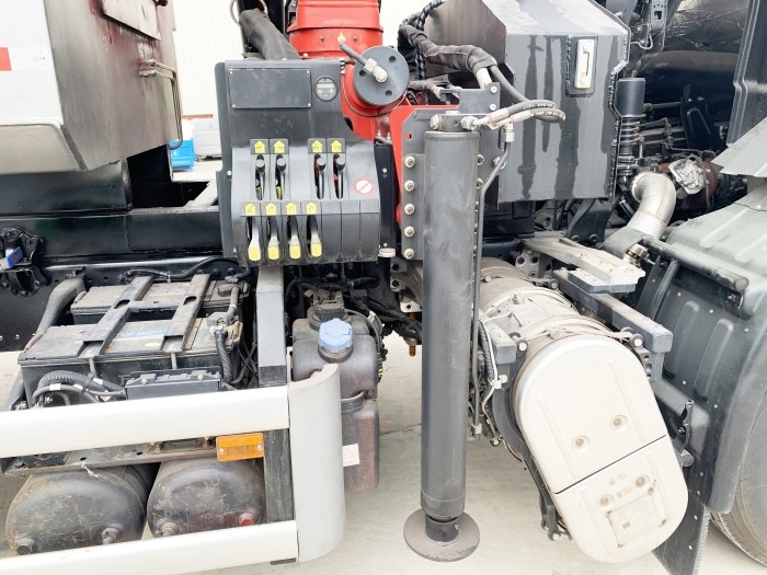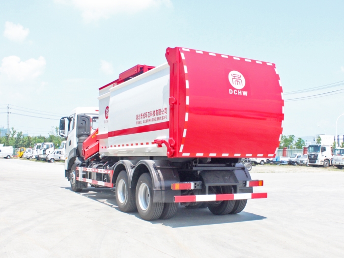 1.該車裝備有吊機(jī)、垃圾箱及液壓機(jī)構(gòu),用于將裝載有生活垃圾的深埋式垃圾桶自行將垃圾壓實(shí)裝入,轉(zhuǎn)運(yùn)和卸料的功用,卸載方式為后卸式;選裝垃圾箱結(jié)構(gòu);僅采用底盤軸距(mm):5350+1350;2.選裝吊機(jī)型號分別為:HIAB 099/HIAB 112/PK10000/SPK10000/SQZ132,對應(yīng)吊機(jī)自重分別為(kg):1465,1520,1129,1356,2850,對應(yīng)吊機(jī)最大起升載荷分別為(kg):3250,3550,5580,5580,6300;3.側(cè)防護(hù),后防護(hù)采用材料/Q235;連接方式為焊接加螺栓連接,后部防護(hù)裝置斷面尺寸(寬×高):60×120(mm),后部防護(hù)離地高度:490mm;4.發(fā)動機(jī)D6.7NS6B290、DDi75E350-60、DDi75E300-60對應(yīng)油耗值均為:32.0L/100km;5.該車裝ABS;ABS型號/生產(chǎn)廠家:3631010-C2000/東科克諾爾商用車制動系統(tǒng)(十堰)有限公司,ABS 8/東科克諾爾商用車制動系統(tǒng)(十堰)有限公司,4460046450/威伯科汽車控制系統(tǒng)(中國)有限公司,安裝帶有衛(wèi)星定位功能的行駛記錄儀;6.隨底盤選裝駕駛室前面罩;D6.7NS6B290發(fā)動機(jī)可選裝后背式排氣管;駕駛室前角擾流板為選裝件;前保險杠及前部燈具和后視鏡,駕駛室頂部中間三個裝飾燈為選裝件,前霧燈為選裝件,駕駛室前風(fēng)窗上部扶手為選裝件.可選裝ETC車載裝置. |