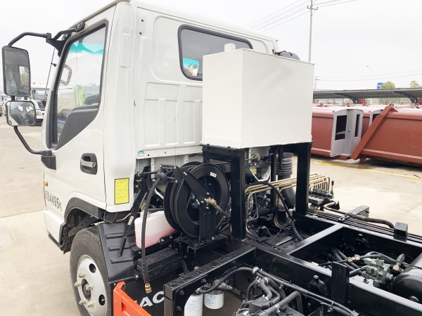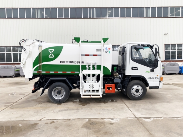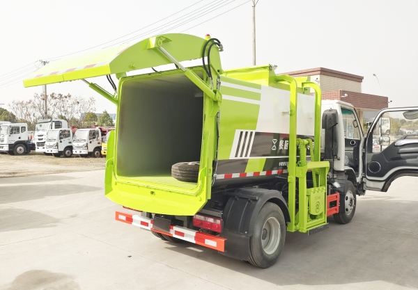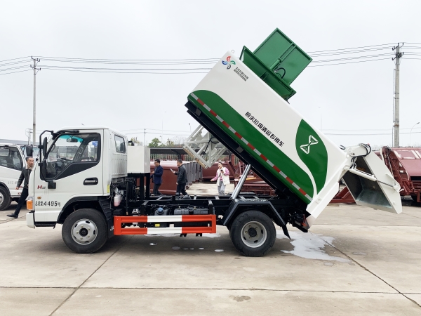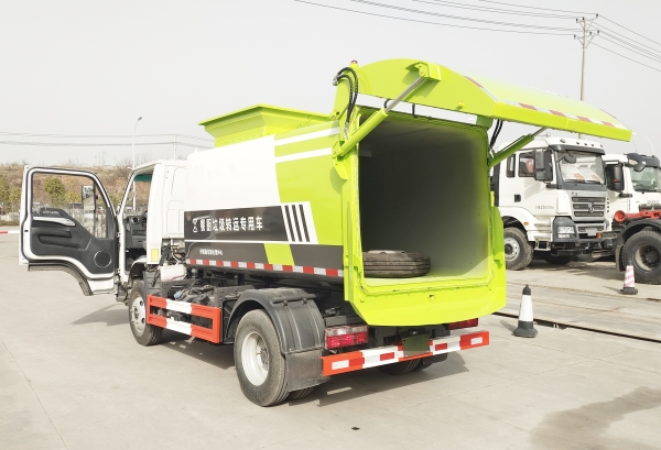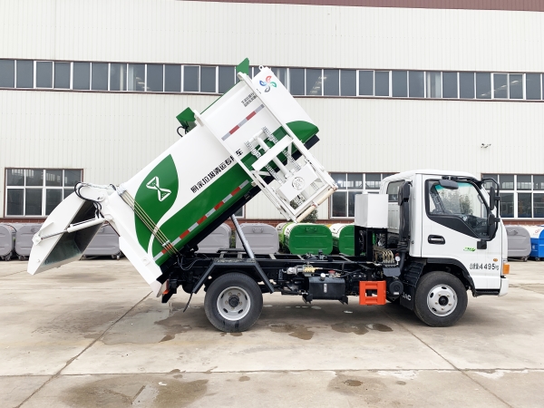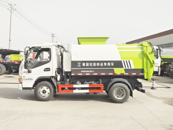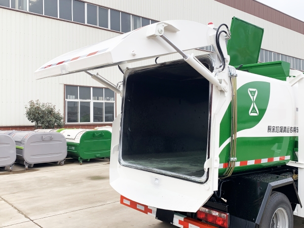 餐廚垃圾車是一種用于收集和運(yùn)輸生活垃圾、食品垃圾(泔水)及城市淤泥的專用車輛。采用側(cè)提桶上料方式進(jìn)行餐廚垃圾收集,采用自卸方式進(jìn)行卸料。先進(jìn)的弧形進(jìn)料口設(shè)計(jì)配上完美得液壓刮板系統(tǒng),使裝料更加快捷和順暢,尾門密封液壓鎖緊系統(tǒng),確保運(yùn)輸途中滴水不漏。 主要結(jié)構(gòu):汽車底盤、垃圾箱體、底架側(cè)提桶機(jī)構(gòu)、后門總成、液壓刮板系統(tǒng)、液壓系統(tǒng)和電控系統(tǒng)。液壓系統(tǒng)及電控系統(tǒng)由油泵、油缸、郵箱、電液閥、PLC單元、行程開關(guān)和開關(guān)等組成。同時(shí)本產(chǎn)品選配高壓清洗系統(tǒng),自動(dòng)稱重系統(tǒng)和衛(wèi)星定位互聯(lián)網(wǎng)系統(tǒng),自帶水箱,可以在現(xiàn)場對本車及垃圾桶進(jìn)行沖洗。是城鎮(zhèn)餐廚垃圾收集運(yùn)輸?shù)睦硐牍ぞ摺?/div>