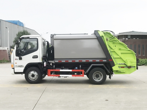 壓縮式垃圾車由密封式垃圾廂、液壓系統(tǒng)、操作系統(tǒng)組成。整車為全密封型,自行壓縮、自行傾倒、壓縮過程中的污水全部進(jìn)入污水廂,較為徹底的解決了垃圾運(yùn)輸過程中的二次污染的問題,避免了給人們帶來不便,關(guān)鍵部件采用進(jìn)口部件,具有壓力大、密封性好、操作方便、安全等優(yōu)點(diǎn)。 可選配后掛桶翻轉(zhuǎn)機(jī)構(gòu)或垃圾斗翻轉(zhuǎn)機(jī)構(gòu)。 專門用于收集城鎮(zhèn)居民生活垃圾和其他可壓縮垃圾的的環(huán)衛(wèi)專用車輛,壓縮式垃圾車由密封式垃圾箱、液壓系統(tǒng)、操作系統(tǒng)組成。整車為全密封型,自行壓縮、自行傾倒、壓縮過程中的污水全部進(jìn)入污水箱,較為徹底的解決了垃圾運(yùn)輸過程中的二次污染的問題,關(guān)鍵元器件采用進(jìn)口件,具有壓力大、密封性好、操作方便、安全省力等優(yōu)點(diǎn)。 主要有后裝壓縮式垃圾車和測裝壓縮式垃圾車,其中后裝壓縮式垃圾車可選配后掛桶收集裝置、鏟斗收集裝置、擺臂收集裝置、掛鐵通收集裝置,用戶可以根據(jù)不同需要選擇不同的收集裝置。