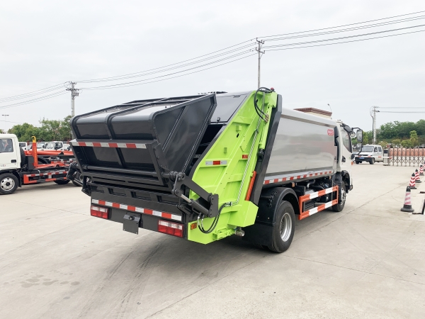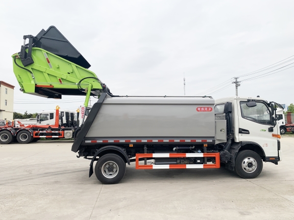 壓縮式垃圾車由密封式垃圾廂、液壓系統(tǒng)、操作系統(tǒng)組成。整車為全密封型,自行壓縮、自行傾倒、壓縮過程中的污水全部進入污水廂,較為徹底的解決了垃圾運輸過程中的二次污染的問題,避免了給人們帶來不便,關(guān)鍵部件采用進口部件,具有壓力大、密封性好、操作方便、安全等優(yōu)點。 可選配后掛桶翻轉(zhuǎn)機構(gòu)或垃圾斗翻轉(zhuǎn)機構(gòu)。 專門用于收集城鎮(zhèn)居民生活垃圾和其他可壓縮垃圾的的環(huán)衛(wèi)專用車輛,壓縮式垃圾車由密封式垃圾箱、液壓系統(tǒng)、操作系統(tǒng)組成。整車為全密封型,自行壓縮、自行傾倒、壓縮過程中的污水全部進入污水箱,較為徹底的解決了垃圾運輸過程中的二次污染的問題,關(guān)鍵元器件采用進口件,具有壓力大、密封性好、操作方便、安全省力等優(yōu)點。 主要有后裝壓縮式垃圾車和測裝壓縮式垃圾車,其中后裝壓縮式垃圾車可選配后掛桶收集裝置、鏟斗收集裝置、擺臂收集裝置、掛鐵通收集裝置,用戶可以根據(jù)不同需要選擇不同的收集裝置。