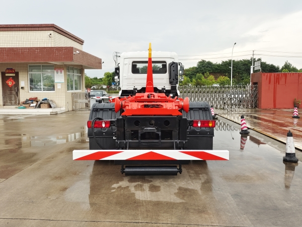 1.該車用于垃圾的收集清運(yùn),主要專用裝置為勾臂;2.選裝后部斜邊結(jié)構(gòu),選裝后部管接頭,選裝后部支腿結(jié)構(gòu),選裝不同勾臂結(jié)構(gòu),選裝備胎架,選裝液壓油箱位置,選裝控制盒位置;整車長(mm)/軸距(mm)的對應(yīng)關(guān)系分別為:7300/4500,7500/4700;3.側(cè),后防護(hù)材料均采用Q235碳鋼,連接方式為焊接加螺栓連接,后部防護(hù)斷面尺寸(mm):120×60,離地高度470mm;4.隨底盤選裝D6.7NS6B230,B6.2NS6B210,B6.2NS6B230,DDi50E190-60,D4.5NS6B190,對應(yīng)的油耗值(L/100km)分別為:23.7,23.8,23.8,23.9,24.4;5.ABS型號(hào)/生產(chǎn)廠家:3631010-C2000/東科克諾爾商用車制動(dòng)系統(tǒng)(十堰)有限公司,ABS 8/東科克諾爾商用車制動(dòng)系統(tǒng)(十堰)有限公司, 4460046450/威伯科汽車控制系統(tǒng)(中國)有限公司,J ABS/焦作博瑞克控制技術(shù)有限公司,安裝帶有衛(wèi)星定位功能的行駛記錄儀;6.隨底盤選裝高度不同的駕駛室;選裝不同部件布局;選裝前霧燈;選裝駕駛室頂部裝飾燈;選裝駕駛室前面罩;選裝前保險(xiǎn)杠及前部燈具,選裝后視鏡;選裝后部燈具;駕駛室前臉擾流罩為選裝件;駕駛室臥鋪側(cè)窗選裝裝飾板;選裝踏步結(jié)構(gòu);選裝后背式排氣管.該車型可選裝ETC車載裝置. |