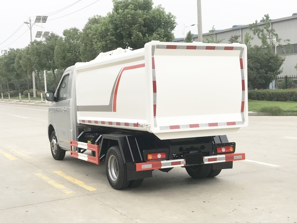 自裝卸式垃圾車是收集、中轉(zhuǎn)清理運輸垃圾,避免二次污染的新型環(huán)衛(wèi)車輛,其主要特點是垃圾收集方式簡便、高效、環(huán)保性好,整車利用效率高,廣泛適用于環(huán)衛(wèi)、市政、物業(yè)小區(qū)、垃圾多而集中的居民區(qū)、城市街道垃圾處理,均具有密封自卸功能,液壓操作,傾卸垃圾方便。 在底盤的基礎(chǔ)上,加裝垃圾箱體、連接附件、防護欄及液壓系統(tǒng)等裝置。具有操作安全、使用性能穩(wěn)定、返修率低、售后服務(wù)及時周到等特點。本產(chǎn)品主要用于收集與轉(zhuǎn)運城市住宅小區(qū)、鄉(xiāng)鎮(zhèn)街道等產(chǎn)生的生活垃圾。整車小巧靈活,行動方便,適應(yīng)人流密集的商業(yè)區(qū)域和道路交通情況較差的城鄉(xiāng)地區(qū)。本車配有側(cè)掛桶進料機構(gòu),在翻桶處操作,可與120L/240L標準塑料桶對接。整車具有自卸功能,卸料方便。