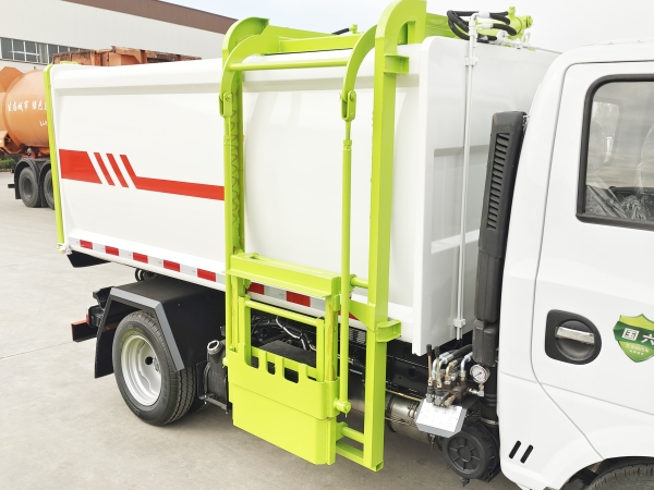 自裝卸式垃圾車是收集、中轉(zhuǎn)清理運(yùn)輸垃圾,避免二次污染的新型環(huán)衛(wèi)車輛,其主要特點(diǎn)是垃圾收集方式簡(jiǎn)便、高效、環(huán)保性好,整車?yán)眯矢撸瑥V泛適用于環(huán)衛(wèi)、市政、物業(yè)小區(qū)、垃圾多而集中的居民區(qū)、城市街道垃圾處理,均具有密封自卸功能,液壓操作,傾卸垃圾方便。 在底盤的基礎(chǔ)上,加裝垃圾箱體、連接附件、防護(hù)欄及液壓系統(tǒng)等裝置。具有操作安全、使用性能穩(wěn)定、返修率低、售后服務(wù)及時(shí)周到等特點(diǎn)。本產(chǎn)品主要用于收集與轉(zhuǎn)運(yùn)城市住宅小區(qū)、鄉(xiāng)鎮(zhèn)街道等產(chǎn)生的生活垃圾。整車小巧靈活,行動(dòng)方便,適應(yīng)人流密集的商業(yè)區(qū)域和道路交通情況較差的城鄉(xiāng)地區(qū)。本車配有側(cè)掛桶進(jìn)料機(jī)構(gòu),在翻桶處操作,可與120L/240L標(biāo)準(zhǔn)塑料桶對(duì)接。整車具有自卸功能,卸料方便。