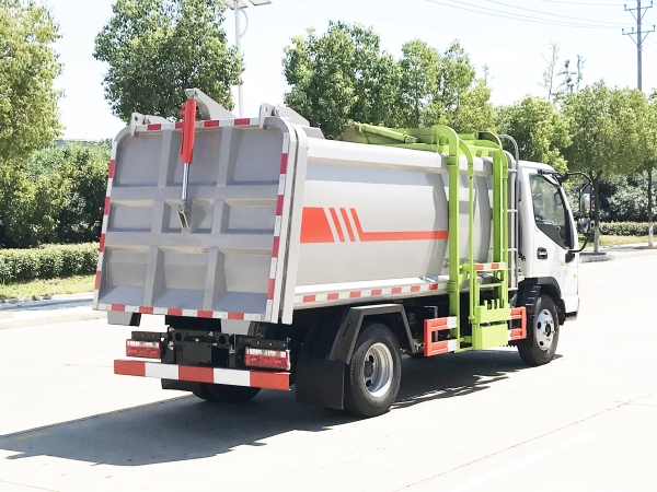 自裝卸式垃圾車是收集、中轉(zhuǎn)清理運(yùn)輸垃圾,避免二次污染的新型環(huán)衛(wèi)車輛,其主要特點(diǎn)是垃圾收集方式簡便、高效、環(huán)保性好,整車?yán)眯矢?,廣泛適用于環(huán)衛(wèi)、市政、物業(yè)小區(qū)、垃圾多而集中的居民區(qū)、城市街道垃圾處理,均具有密封自卸功能,液壓操作,傾卸垃圾方便。 在底盤的基礎(chǔ)上,加裝垃圾箱體、連接附件、防護(hù)欄及液壓系統(tǒng)等裝置。具有操作安全、使用性能穩(wěn)定、返修率低、售后服務(wù)及時(shí)周到等特點(diǎn)。本產(chǎn)品主要用于收集與轉(zhuǎn)運(yùn)城市住宅小區(qū)、鄉(xiāng)鎮(zhèn)街道等產(chǎn)生的生活垃圾。整車小巧靈活,行動(dòng)方便,適應(yīng)人流密集的商業(yè)區(qū)域和道路交通情況較差的城鄉(xiāng)地區(qū)。本車配有側(cè)掛桶進(jìn)料機(jī)構(gòu),在翻桶處操作,可與120L/240L標(biāo)準(zhǔn)塑料桶對(duì)接。整車具有自卸功能,卸料方便。